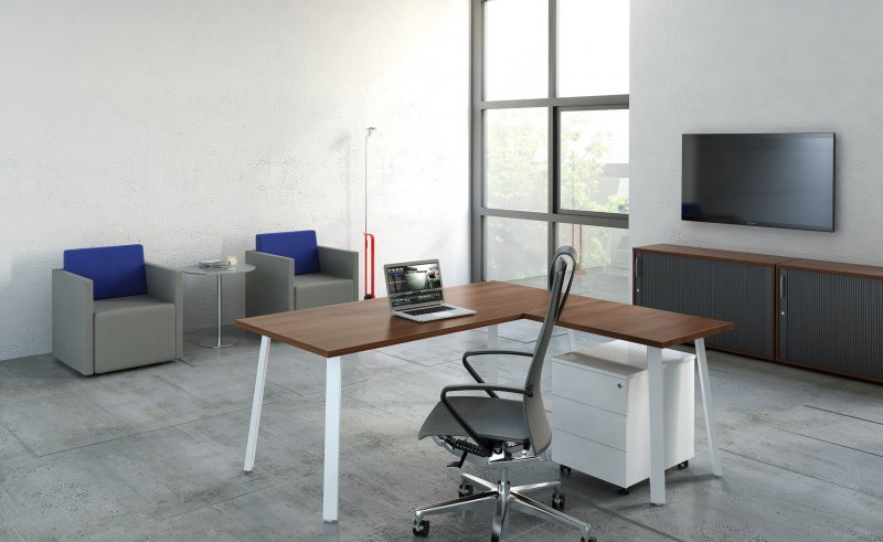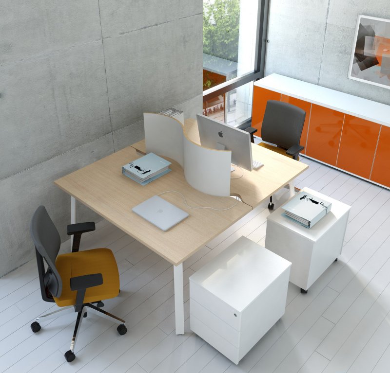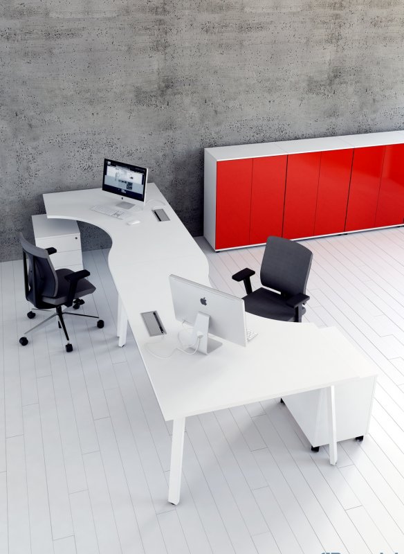 Ihrer Form sei Dank passen sich die Schreibtische den Bedürfnissen des Praxisteams an, dabei sind Ergonomie und Komfort die wichtigsten Merkmale dieser zeitlosen Praxismöbel. Die Schreibtischplatten können standardmäßig rechteckig oder in freier Form und in folgenden Farben bestellt werden: Wenge, Birke, Buche,